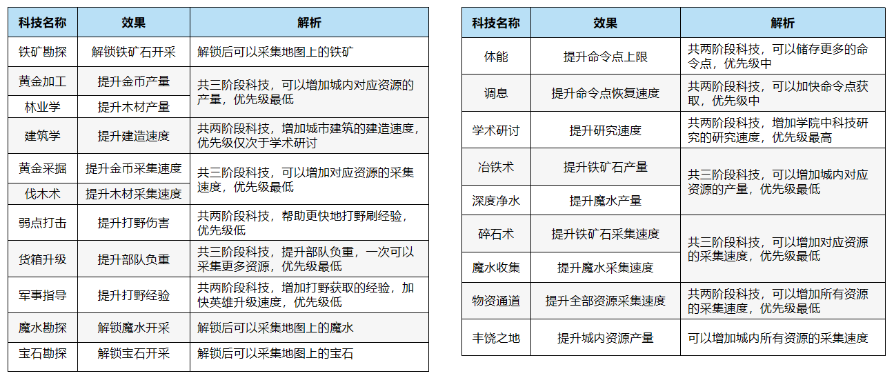学院科技通过主城建筑—学院查看,是个人发展的基础科技,也是战斗力重要的组成部分。
