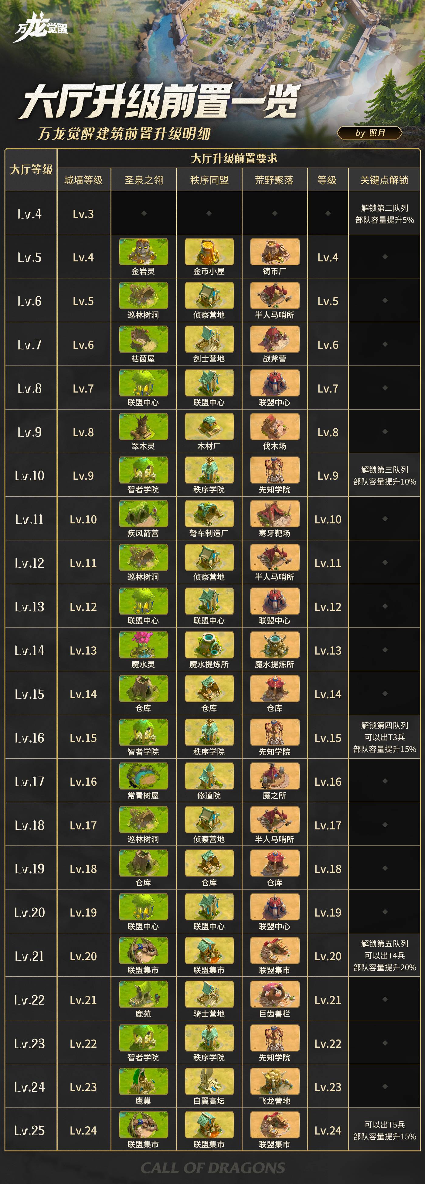 大厅:升级第一优先级建筑,升级大厅可以解锁其他建筑的等级上限、更多队列、更高的科技等等,是万龙觉醒中最核心的建筑。