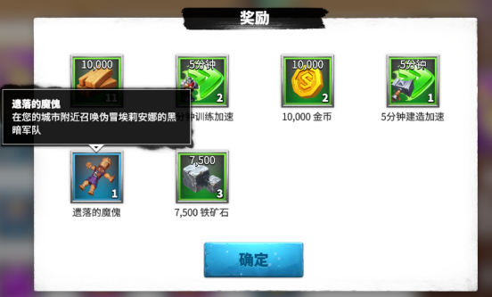使用遗落的魔傀后,你的城市附近就会出现伪冒埃莉安娜的黑暗军队,只要发动集结击败该军队就有概率获得战术手册、埃莉安娜的信物、加速、资源等道具。