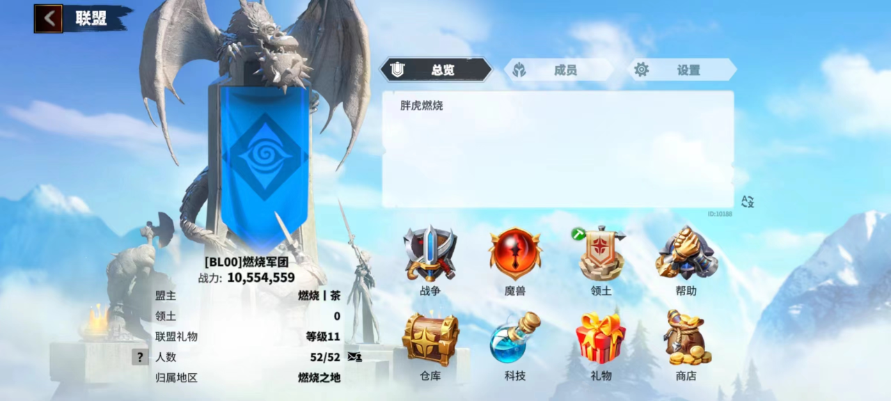 战争页面可以看到当前联盟的战争情况,如果有人需要帮助,不妨伸出援手;