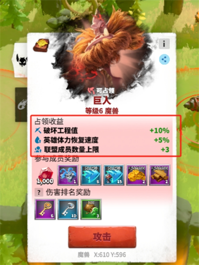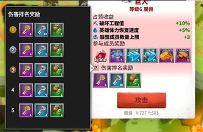 成功首次占领魔兽后,联盟中所有的成员都会获得丰厚的道具奖励,而参与作战的成员更可以根据伤害排名获得额外奖励。
