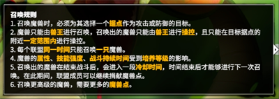 当魔兽开启占领时,盟主和官员就可以号召联盟成员集合共同攻克魔兽,击败并净化魔兽。