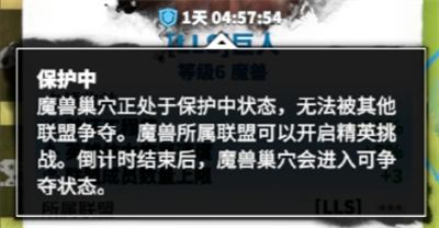 成功占领魔兽后一段时间,魔兽就会进入保护时间,保护时间内的魔兽无法被其他联盟占领,占领的联盟则可以趁此机会进行精英挑战。