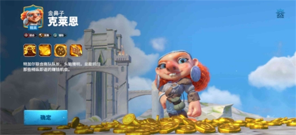 克莱恩属于经济型英雄,游戏中的主要定位是从事采集等后勤工作,能够大幅提升各项资源采集效率,尤为擅长采集金币。