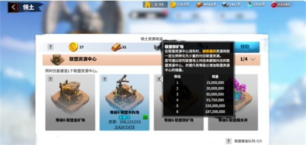 联盟资源中心的储量极高,可以派遣采集速度最快的一支队伍前往长期采集,以获取大量资源,不用频繁执行采集操作,并且进入联盟资源中心后无法被攻击,采集部队的安全有保障。
