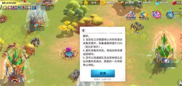 在己方联盟领土内的资源点进行采集时,采集速度将会+25%,相比联盟领土外快得多。