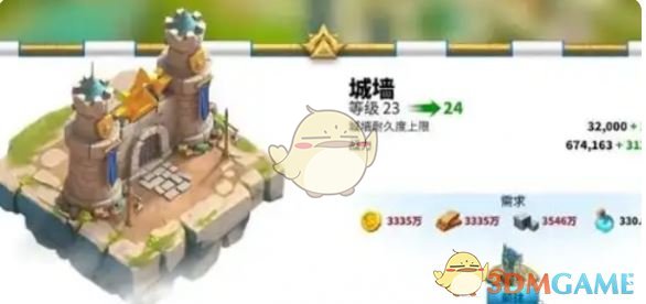2、资源要求:提升城堡等级需消耗粮食、木材和石头等材料,城堡的等级越高,升级需要的材料就越多。