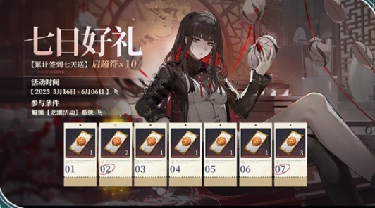 1、活动期间,累计登录七天可领取10张「启瞳符」奖励。