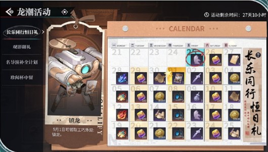 1、活动期间,每日签到都可领取好礼,5月1日可获得工巧外观:镇龙。