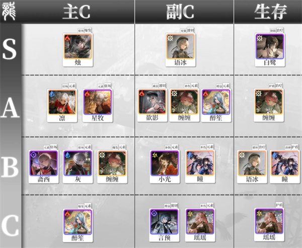 1、烛:强力的全能型输出角色,拥有断档的强度。