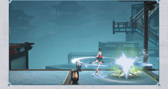 冲击靠近敌人后,释放一段派生攻击,造成水属性伤害。再次点击将消耗【霜能】进行【雪蝶回旋]】,持续攻击周身的敌人。