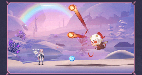 缠缠和兔仙仙来帮忙啦!入场后,对两侧和前方分别造成一次阳属性伤害。