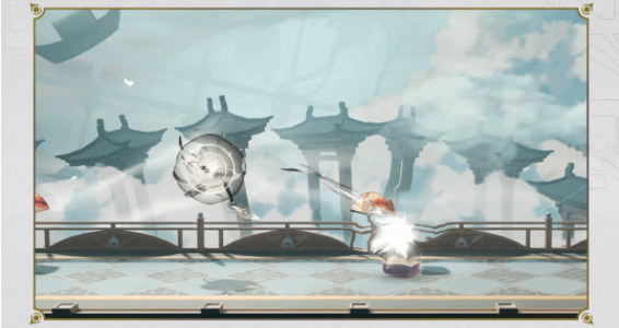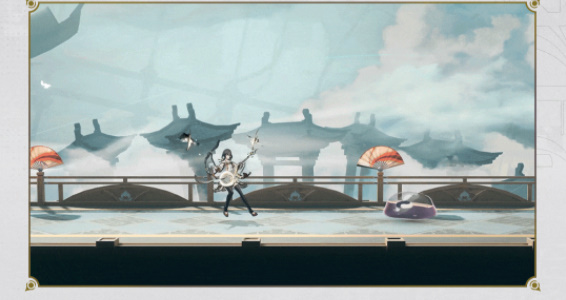 怀抱【鸾琵琶】朝前方旋转冲刺,脚踢敌人造成一次伤害,顺势朝后空跳跃。弹奏【鸾琵琶】,朝当前敌人发射一道【音律】。
