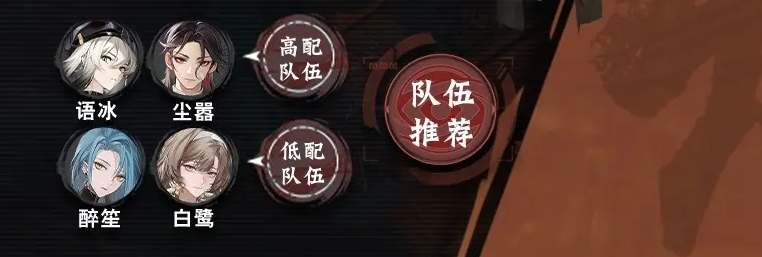 低配阵容推荐选择醉笙+白鹭。