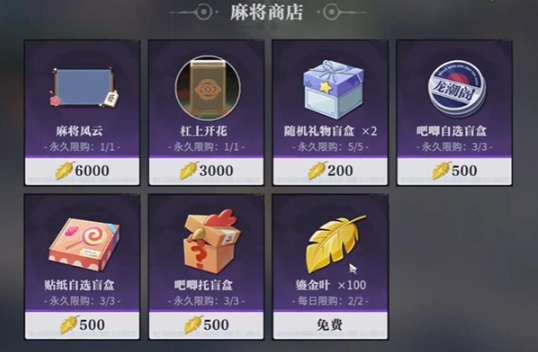 3、在商店中,玩家可以免费领取100个鎏金叶,每天可以领取2次,一共200。