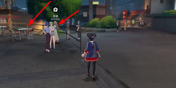 4、和下图所示的角色交互一下,即可进入麻将商店。