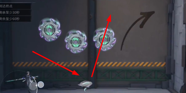 3、在下图所示位置,注意距离跳两下直接冲刺过去就可以了。