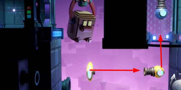 5、玩家可以直接跳到这个黄色炮塔这里,然后就可以进入这个蓝色的炮塔,然后就能直接上去了。