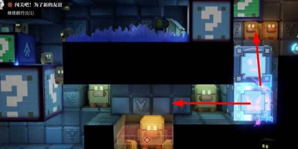 9、来到这个位置需要玩家先把这个方块调成透明的,然后这两个方块来到一起之后就可以下去了下去。