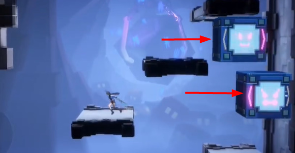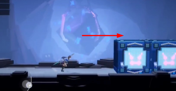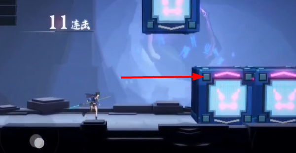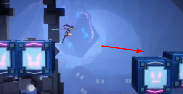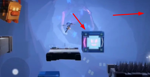 3、到这个位置后,先上来这个箱子上,等箱子到右边后,再过去右边。