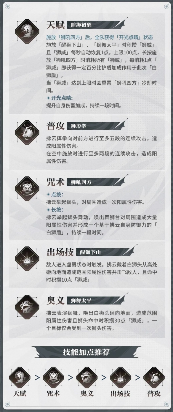 技能升级推荐:天赋>咒术>奥义>出场技>普攻
