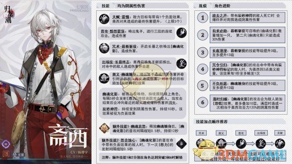 归龙潮斋西潮品怎么选,斋西虽然是辅助,但从技能机制方面能看的出斋西也具备一定的输出能力。所以一定程度上也是值得培养的,如果玩家们抽取到的话,不妨参考小编下方整理的培养配队攻略方向培养看看。