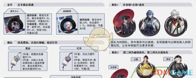 虽然说配队是这样子给出来,但实际上这几个角色都可以随机搭配,只要是【长命锁+破韧+支援】即可,至于双辅或双破的话,看个人,我觉得双破可以考虑一下,双辅的话就算了。