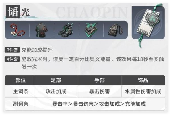 4件套 施放咒术时,可以提升百分比奥义能量。该效果每18秒至多触发一次。