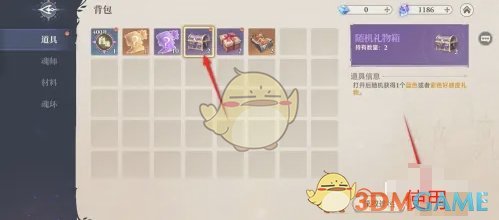 1、找到背包并前往后,选择随机礼物箱道具并选择使用;