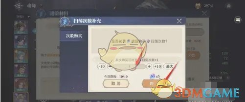 4、最后选择购买次数,点击购买即可获得扫荡次数;