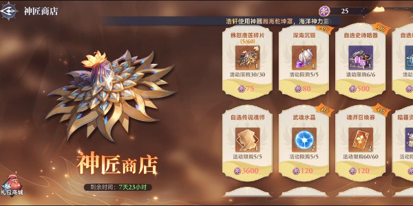 使用“暗器币”兑换豪华奖励,活动期间可使用暗器币兑换佛怒唐莲碎片,集齐一定碎片后就可以合成佛怒唐莲。