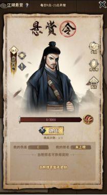 4、玩家达42级开启江湖悬赏,每日9点-23点可挑战,每日可挑战3次悬赏首领,挑战的内容不可重复,每套阵容需配置1名侠客和至少1张武功。最后以伤害排行发放奖励。