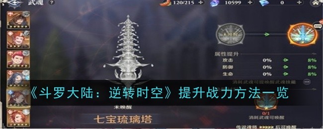《斗罗大陆:逆转时空》怎么提升战力?在游戏中许多玩家对于战斗力的快速提升方法还不是很清楚,小编已经帮助玩家们整理好了游戏提升战力的具体方法,希望可以给玩家们带来帮助。