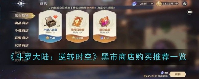 以上就是小编整理带来的《斗罗大陆:逆转时空》黑市商店购买推荐一览,更多相关游戏攻略,请关注这里下载站!