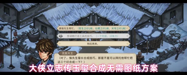 大侠立志传传国玉玺合成没有拿到图纸怎么办,游戏中有两个获得传国玉玺图纸的地方,如果玩家们都错过这两个地方的话可以尝试下方的方法,那就是燕云地区的老头。这样就无需在重新开启一周目了。