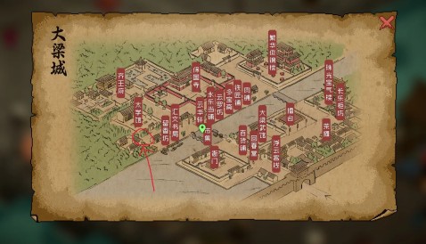 谜之藏宝图三对应大梁城太学馆门口左边角落。