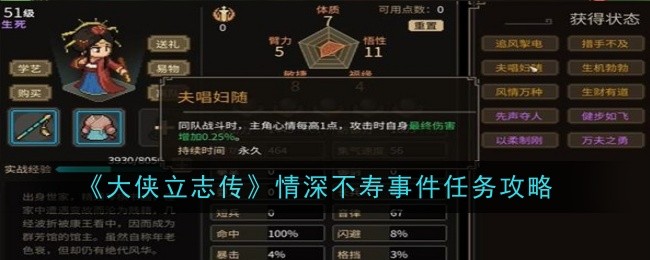 以上就是小编整理带来的《大侠立志传》情深不寿事件任务攻略,更多相关游戏攻略,请关注这里下载站!