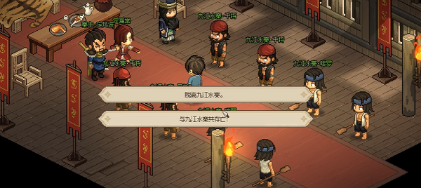 5、回到聚义厅后,和诸葛神机对话选择【脱离九江水寨】,战胜后就可以邀请他入队了。