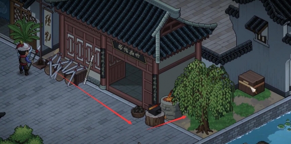 2、去【铁匠铺】然后往铁匠铺前面走,在树旁边找到线索;