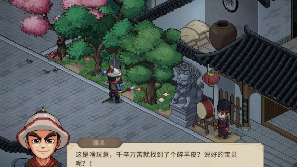 4、去【衙门】来到树下选择【开挖】获得碎羊皮完成任务。