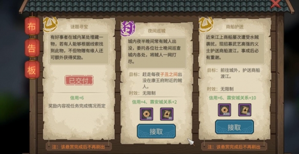 1、先去【霖安城】的布告板上接取乙级任务【谜题寻宝】;