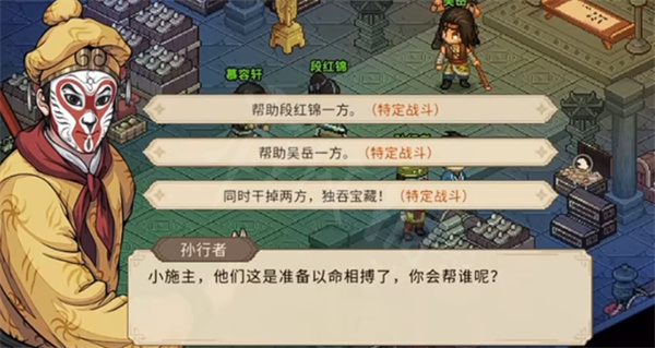 1、你选择帮助段红锦或吴岳,击败另一方。