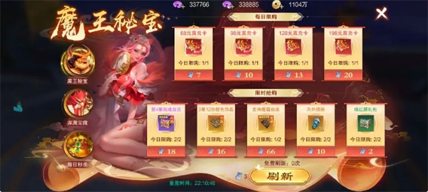 探索:在魔王秘宝中,通过挑战或任务获得魔王卷,可兑换传说与史诗级魔器。