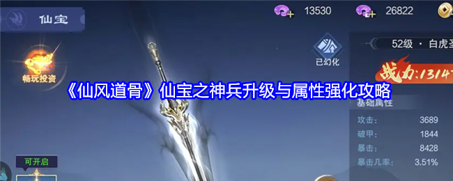 以上就是小编整理带来的《仙风道骨》仙宝之神兵升级与属性强化攻略,更多相关攻略,请点击关注这里下载站,小编将持续为您更新!