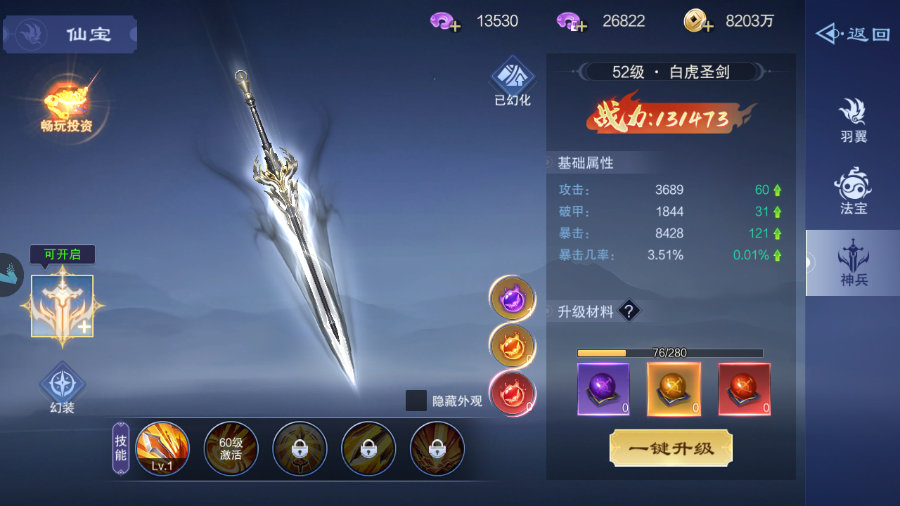 一、神兵升级