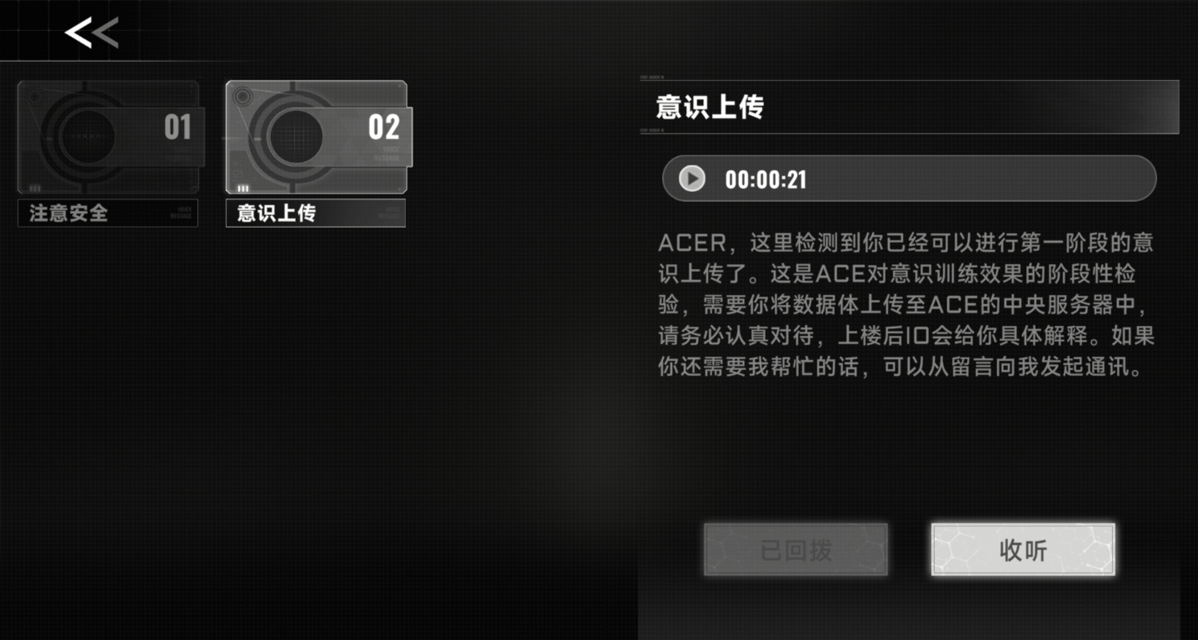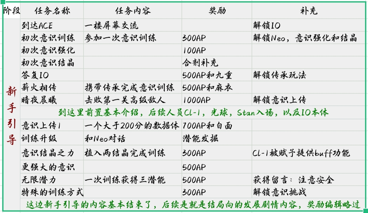 这个游戏的引导有点不太一样,IO的六次意识上传是最基本的剧情推进,意识4有一个重要选择。意识5任务是通关训练,意识6是直接大结局了!