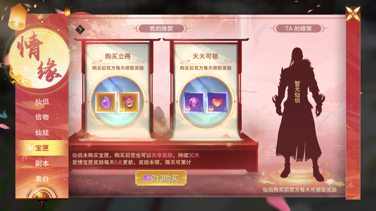 缔结仙缘:选择【缔结仙缘】后,你将有机会向符合条件的好友发起提亲。