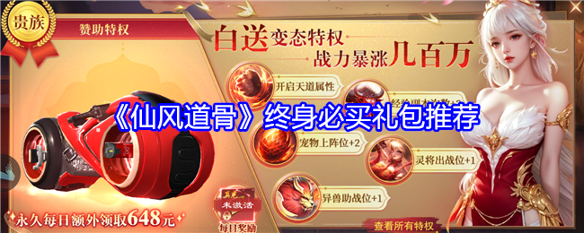 ①立即购买:作为终身必买礼包之首,赞助特权是你踏入仙途的第一步。它不仅提供了持续不断的资源支持,更是VIP等级提升的关键。