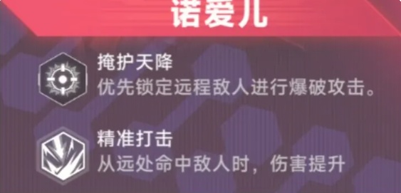 诺爱儿传承技具有远程攻击的效果,两个技能分别是掩护天降、精准打击。
