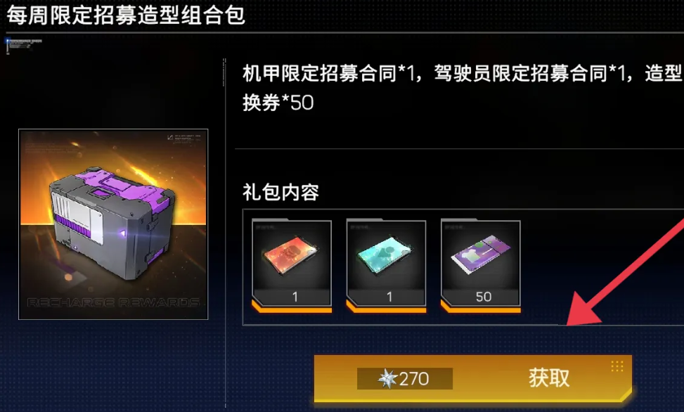 硬核机甲启示限定招募造型组合包怎么获取?限定招募造型组合包是游戏中一个稀有的道具,玩家每周只可以获取一个,购买后可以领取机甲限定招募合同和驾驶员限定招募合同,下面小编就给大家带来获取方法介绍,有需要的小伙伴不要错过,快来看看吧!